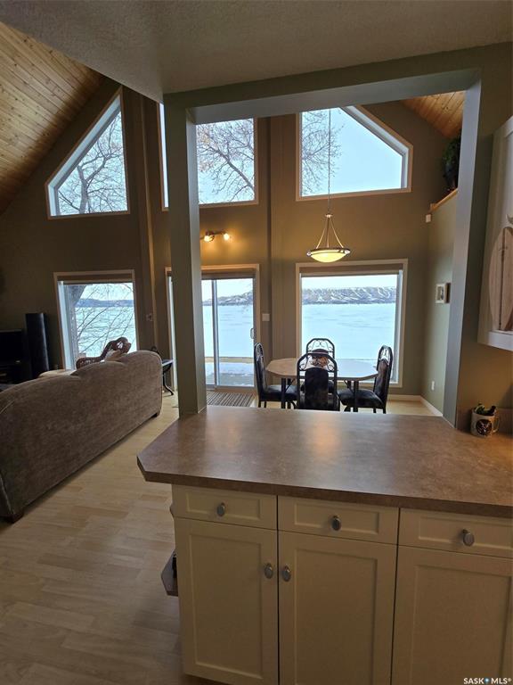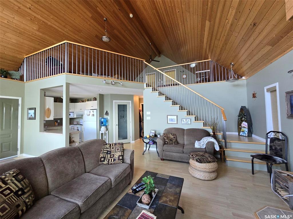 WAKE UP TO LAKEFRONT LIVING AT IT'S FINEST IN THIS BEAUTIFUL CROOKED LAKE HOME. Built in 2004 , this one owner home is breathtaking , meticulous and turn key for possession. Leased lot (64'x ) on the quiet side of Crooked Lake , Grenfell Beach (Yellow Calf) will be sure to please. Private access , well treed and a flat lot makes it easy to maintain. This "A" frame home is approx 1300 Sq ft including the main level and loft. Enter the home from the backyard into a porch, with closet/ laundry and the mechanic...