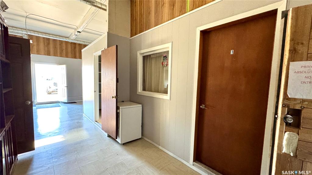 109 McGregor St – MULTI-USE COMMERCIAL PROPERTY IN Davidson, SK This versatile property spans 11 titled parcels in the heart of Davidson, offering a rare combination of COMMERCIAL SHOP SPACE, living quarters, and storage. Originally built in 1971 as a Ford dealership, the main building now features a renovated front area with a kitchen, living room, office space, and four lockable bedrooms - ideal for staff housing or a live/work setup. The rear workshop, built in 1973, includes a forced air furnace, TWO...