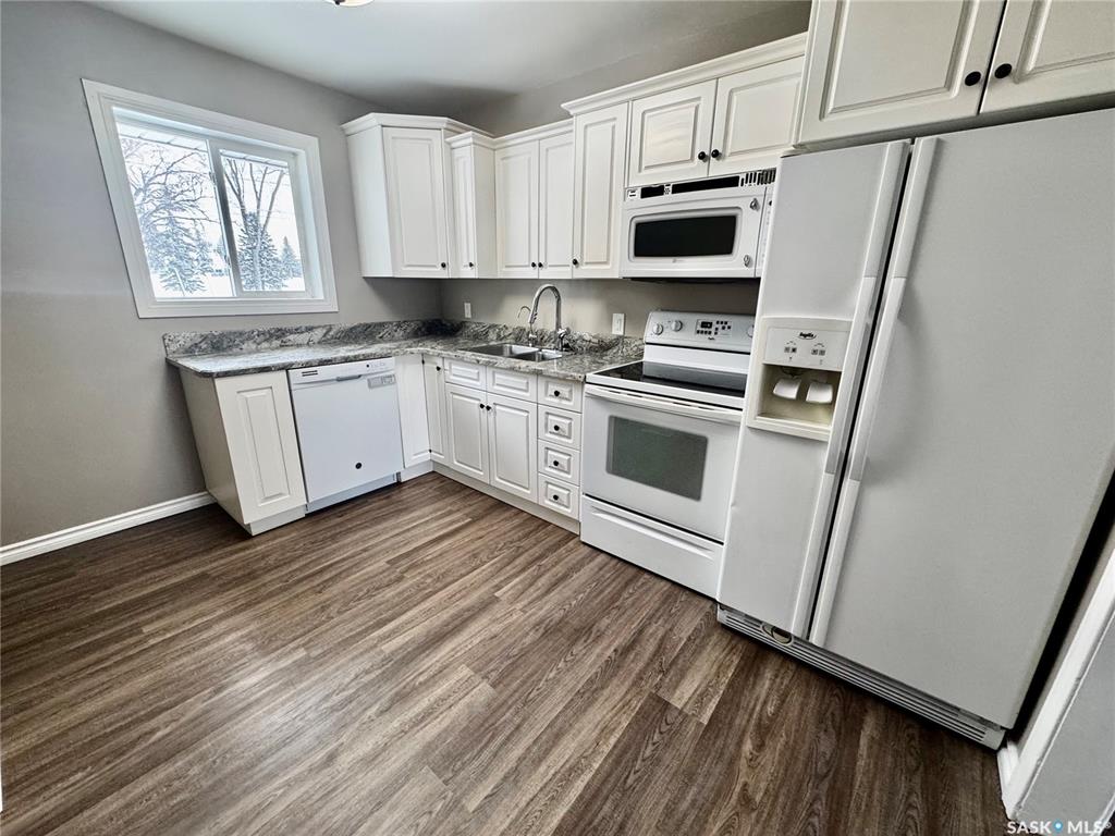 Immediate Possession Available! Welcome to 159 Peaker Avenue in Yorkton SK. Driving up to the property you will find off street parking for up to 3 vehicles. Entering the home from the west entry door will bring you to a porch area. A few steps over will take you into the large living room with west facing window. The kitchen area features included fridge, stove, microwave, and dishwasher. The east facing windows allows a great view of the back yard and green space known as Roslyn Hill. The kitchen also has...