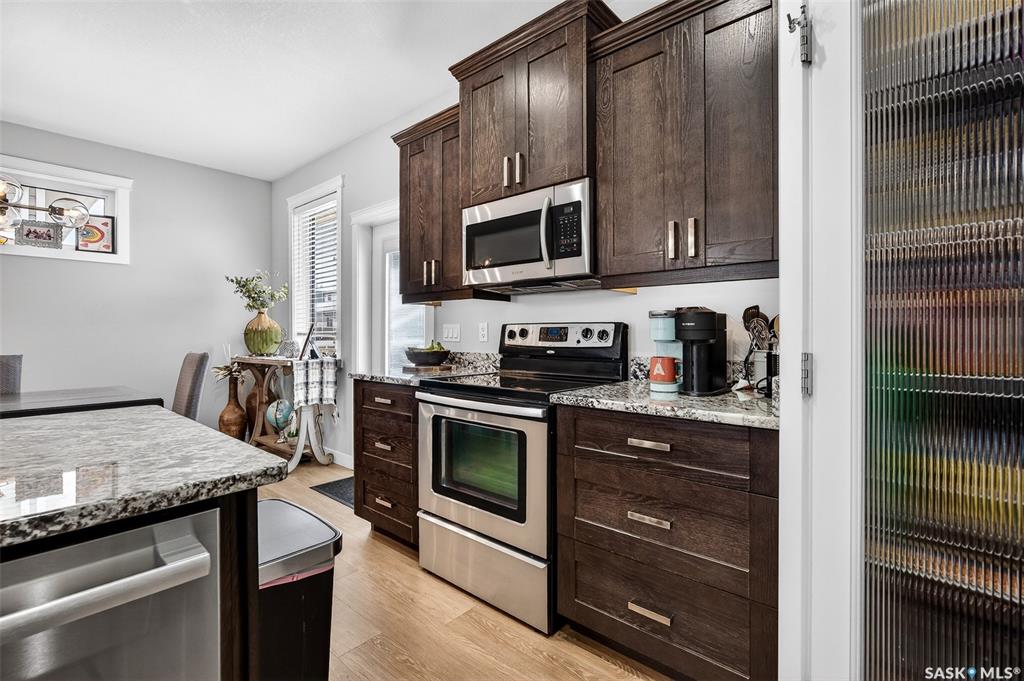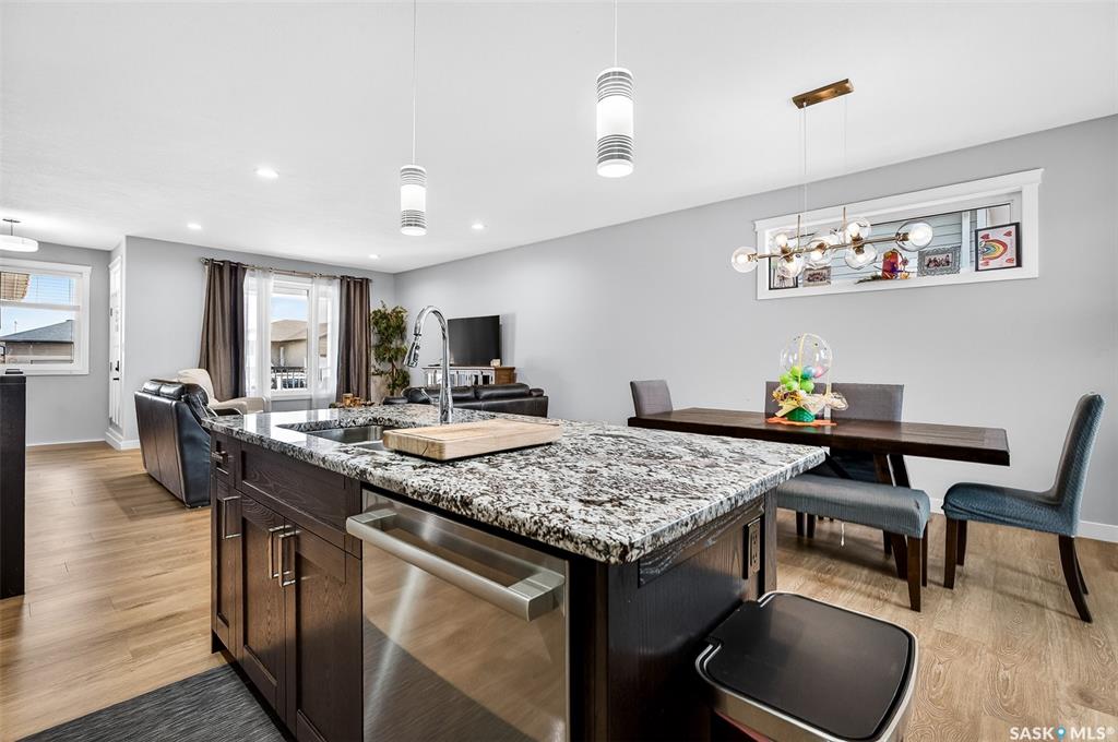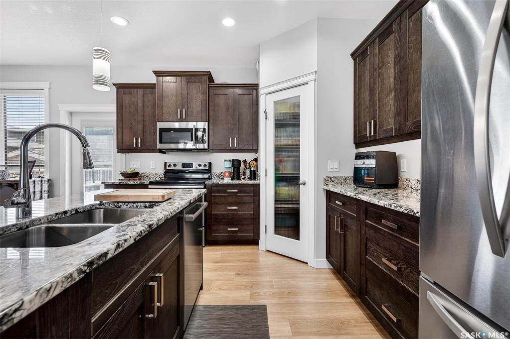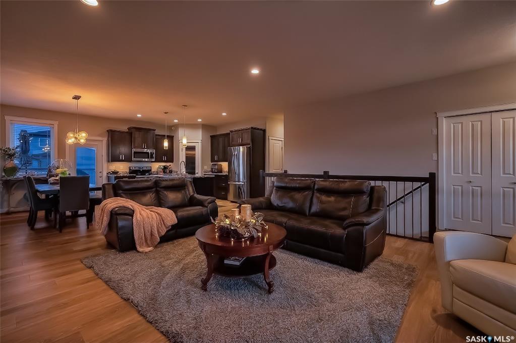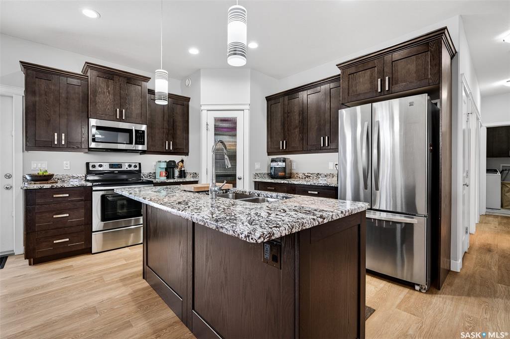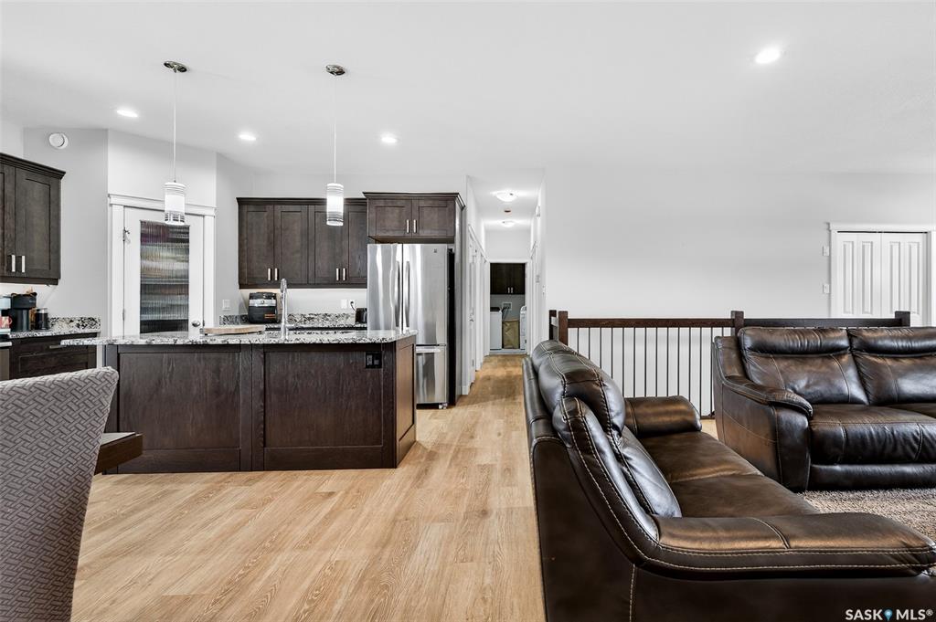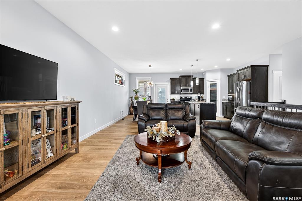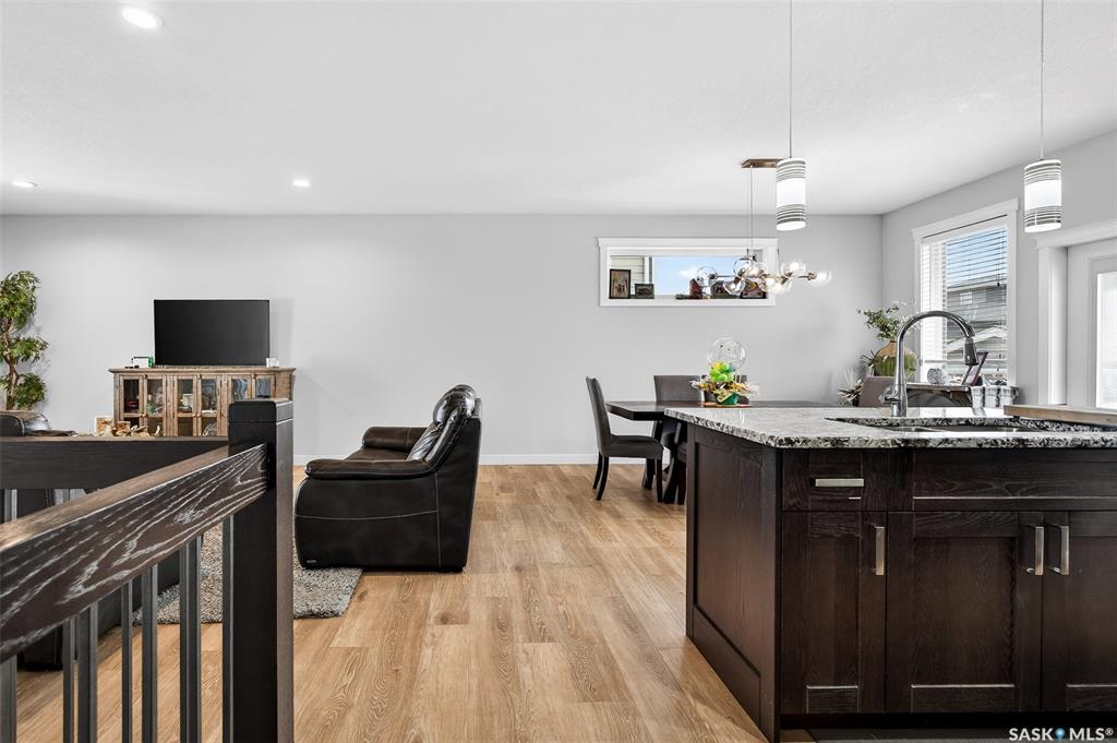 LOCATION, LOCATION! Situated a short walk to Moose Jaw’s newly opened joint use Coteau Hills Elementary School! For starters, the cozy, east facing deck will be the perfect spot to enjoy your morning coffee! Beautifully finished up & down, this immaculate home shines! Entering the home, you are welcomed by the open concept Living Area which is bathed in natural light & decorated in calming neutral tones. The heart of the home – the Kitchen - is a delight with an abundance of dark stained oak cabinets showca...