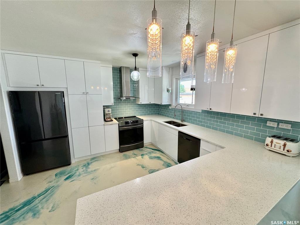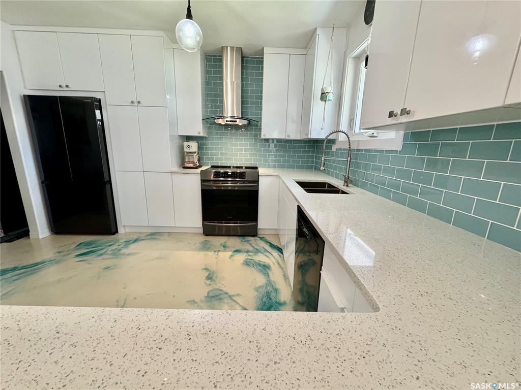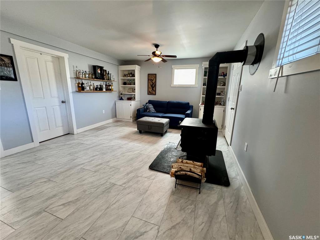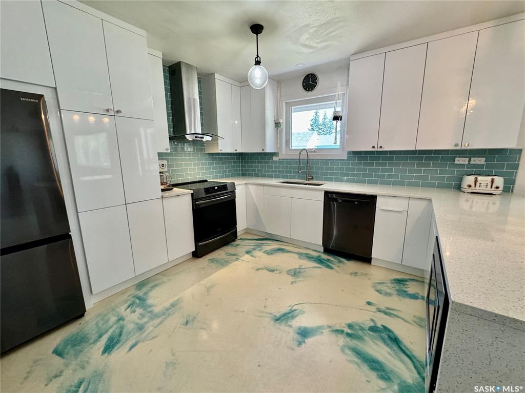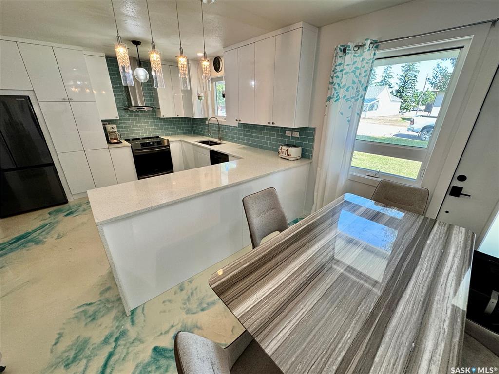 Welcome to 212 Taylor Avenue in Springside SK. Driving up to the property you will find a large driveway leading to an attached double car heated garage (30x23). Through the breezeway will take you to the 1250 square foot home's porch area. A few steps over will take you to the extensively renovated kitchen that features quartz countertops, high gloss white countertops, glass back splash, ample amounts of counter space, induction stove with high volume hood fan, fridge, dishwasher, and epoxy finish flooring...
