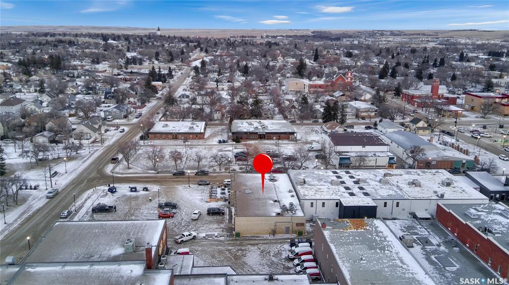 PRIME downtown Swift Current commercial opportunity on a high-visibility corner at 1st Avenue NE and Herbert Street. This single-storey masonry brick building (60' x 112', approx. 6,720 sq.ft.) offers excellent access, strong street presence, and a RARE advantage for the downtown core: a large on-site paved parking lot with approximately 35 stalls. A parking lot of this size is unheard of downtown. The building is positioned along the south edge of the site, maximizing parking and circulation to the north, ...