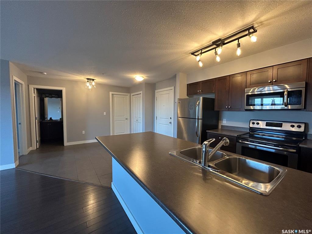 Easy condo living in this 907 sq. ft. 2 bedroom/2 bath home in Petterson Point. Kitchen features a large island and walk in pantry. On the third floor, this unit has an open view to the north. All kitchen appliances included and a stackable washer dryer in suite. One underground parking spot will keep the chill off in the winter. Conveniently located a block from shopping, restaurants and 3 blocks from K- 8 Spruce Ridge School and the Comprehensive High School. Priced to sell!