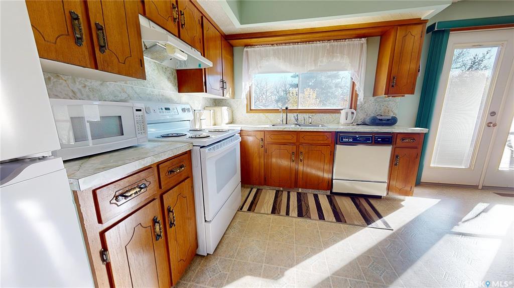 Welcome to 404 Cypress Street in the town of Maple Creek SK. This 5-bedroom bungalow is a solid-built, 2nd-owner home. The main living space boasts plenty of natural light, an open kitchen/dining with U-shape cabinets providing plenty of countertop, sink with a window to the beautiful back yard, garden doors to the back deck perfect for those back yard B-B-Q’s. The spacious living room has updated laminate flooring, which flows down the hall and through 2 of the 3 bedrooms. The Master has 2 pc. ensuite wi...