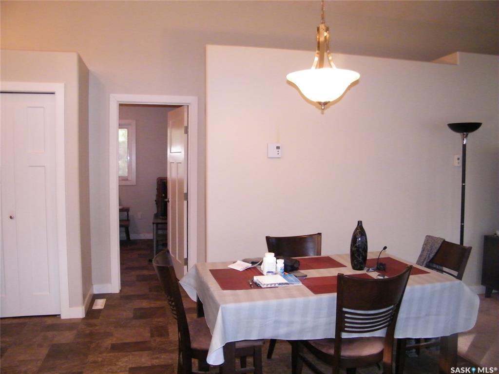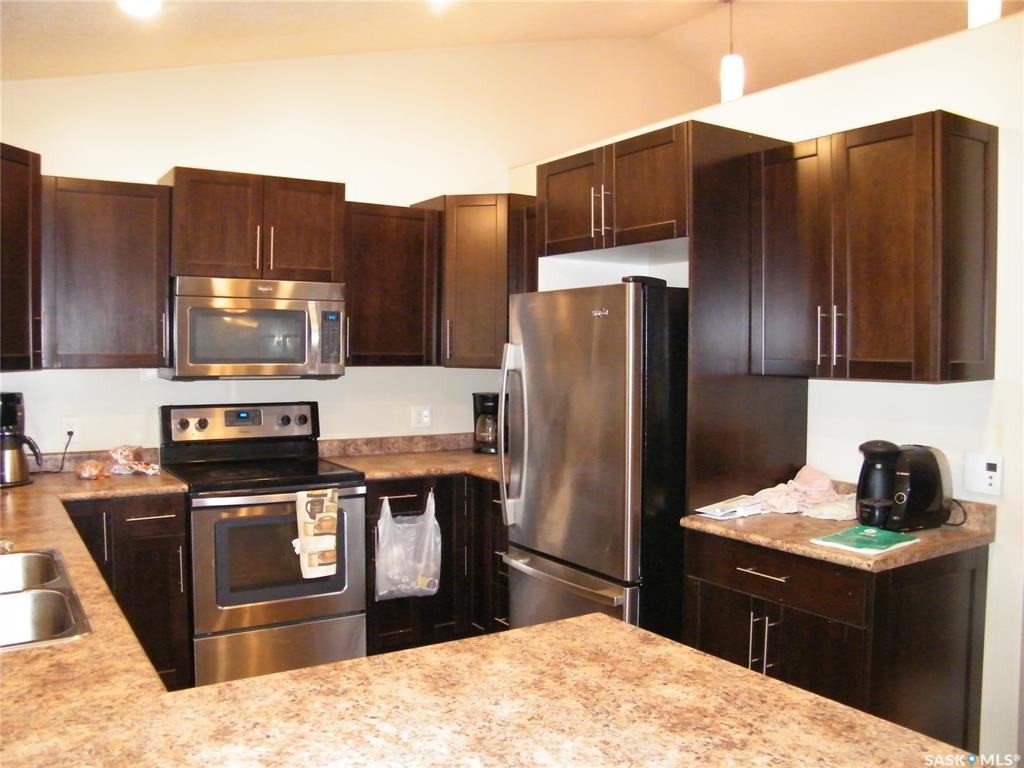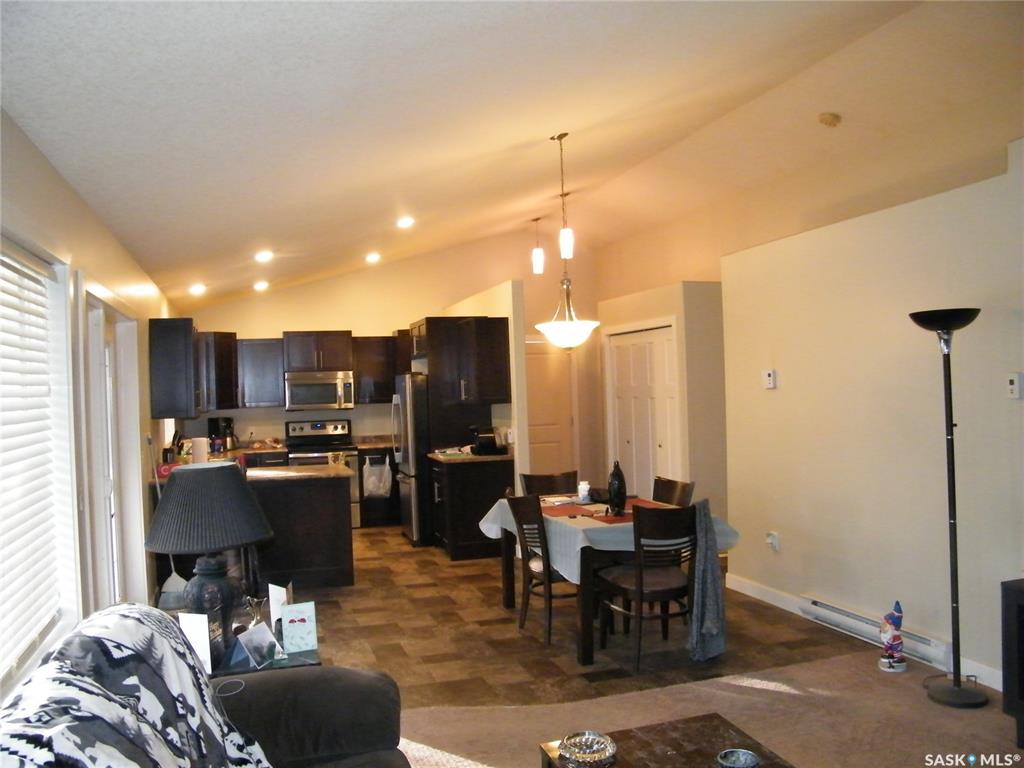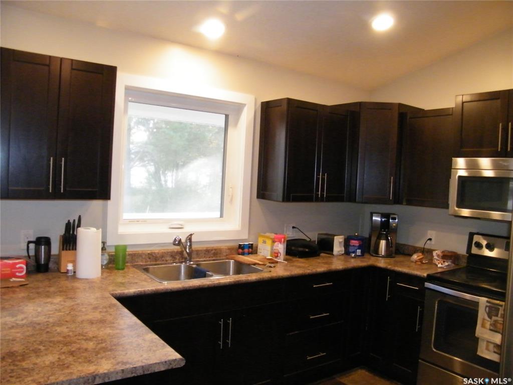 Located on Centre Street in Middle Lake, Saskatchewan this 2014 built approximate 1008 square foot bungalow on a crawl space features 2 bedrooms, 1 bath and an open concept kitchen, dining and living room with vaulted ceiling and wrap around covered verandah. The house has a 200 amp panel. This home is located on a 74 x 141 foot lot. There is ample yard space and also includes an oversized single garage that has its own panel box. The home is located a short walk to the gates of Lucien Lake Regional Park...