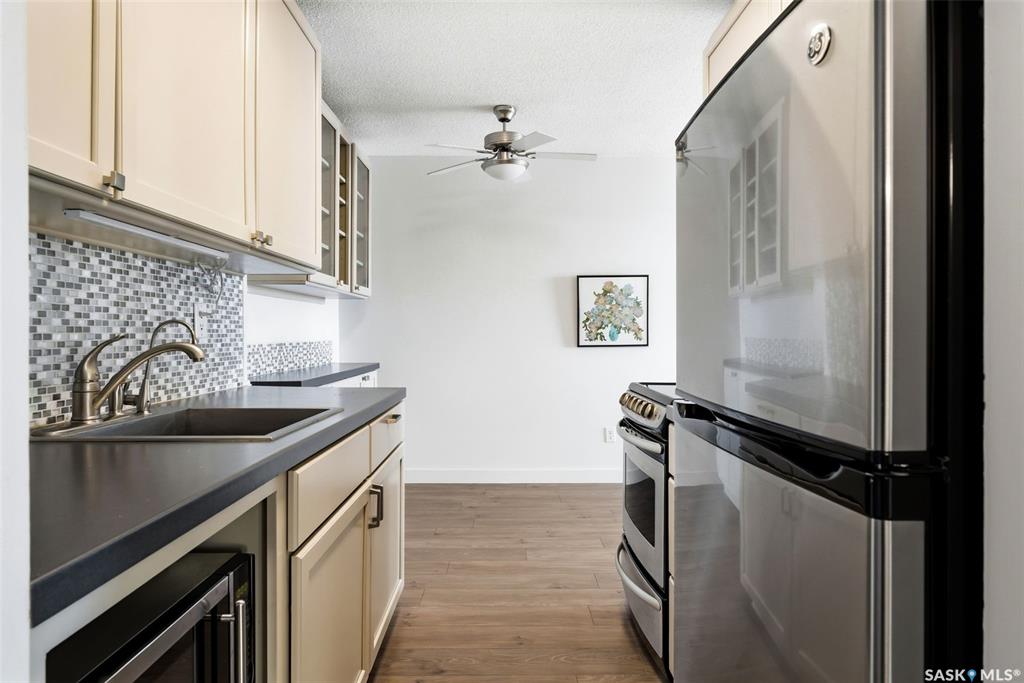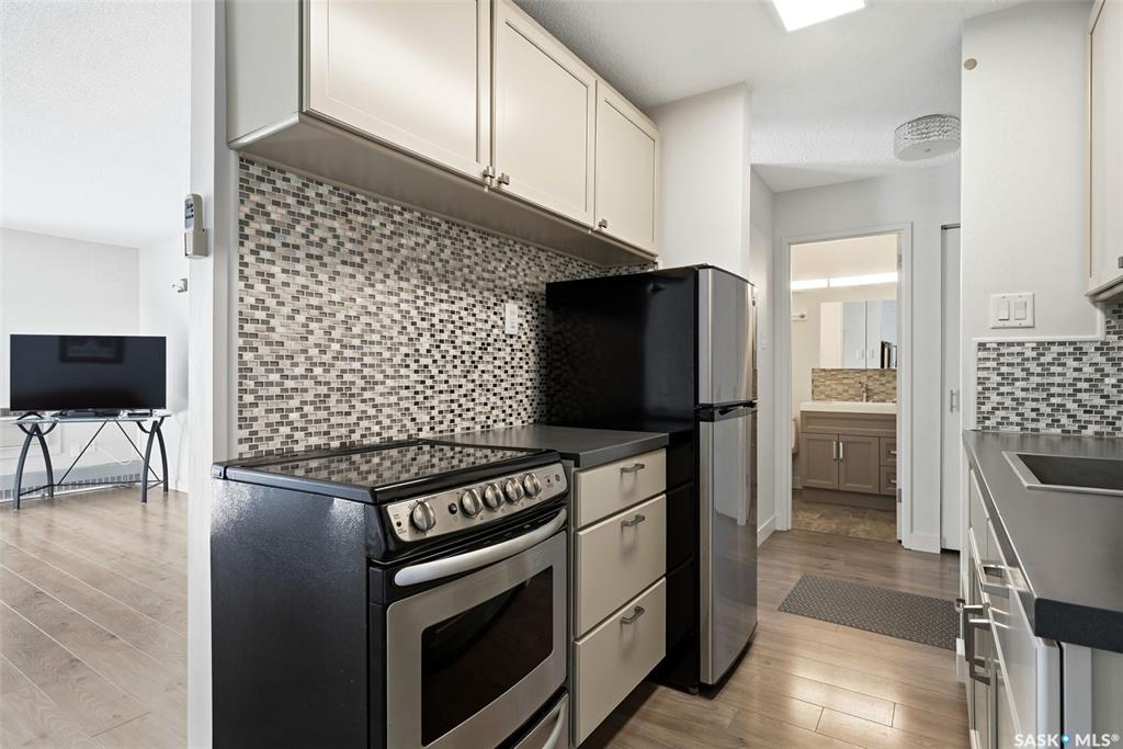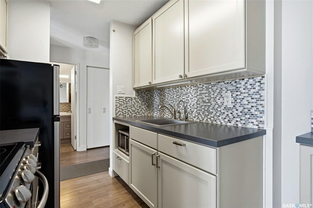 Excellent opportunity for a first-time buyer or investor. This gorgeous east-facing fourth-floor condo is well located and tastefully renovated, featuring modern laminate flooring throughout, updated lighting, an updated bathroom, and a beautifully designed custom kitchen with a matching built-in buffet in the dining area. The unit was freshly repainted in 2025 and is completely move-in ready. Bedroom window and balcony window/door were replaced in February 2024. The building elevator was replaced in 2019. ...