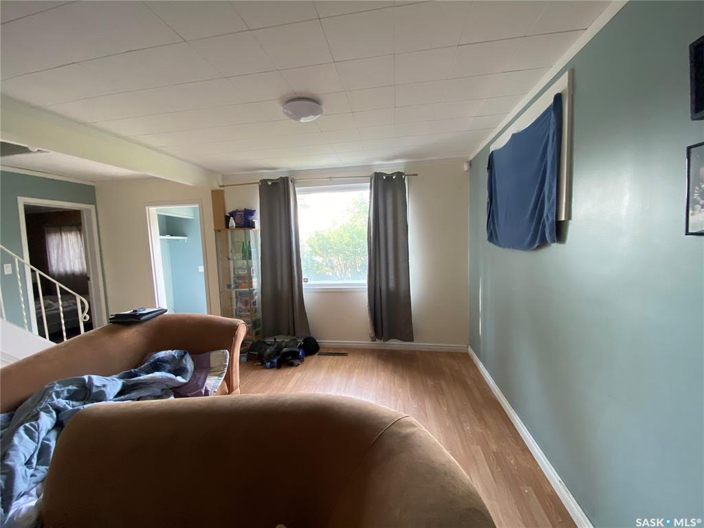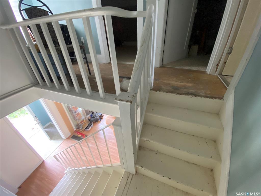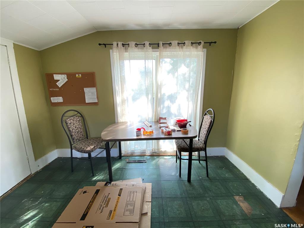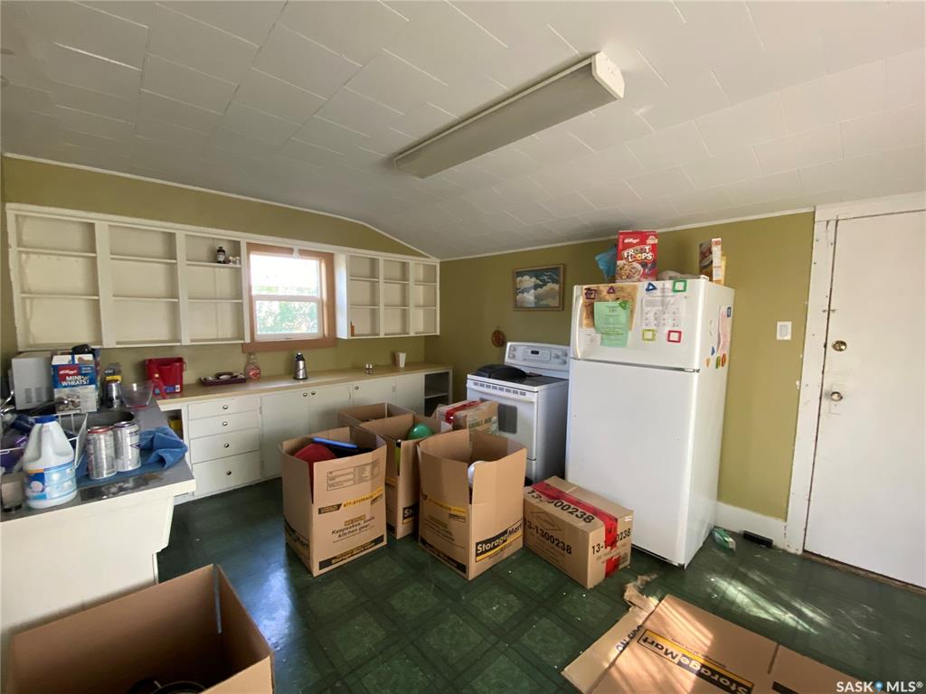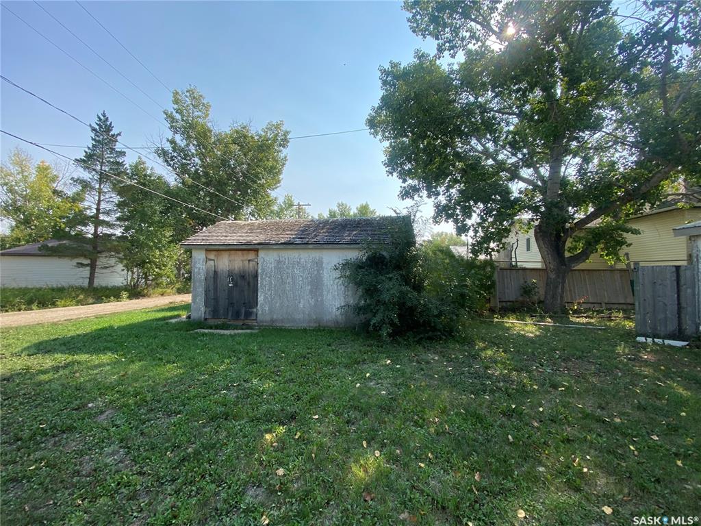 81 Grand Ave, Plenty, SK. This one and a half storey home is situated on two corner lots. Built in 1912 and offers approximately 923 sq.ft. of living space above ground. Some cute character left in this home. The living room is a good sized with built in shelving. The kitchen and dining offer plenty of cupboard space and patio doors as well as access to the back porch. An addition to this home allows for the large laundry room, 4 piece bath and bedroom. On the 2nd level up you will find two more bedrooms an...