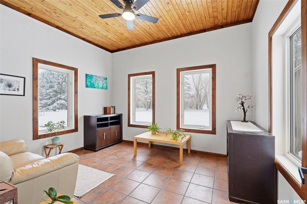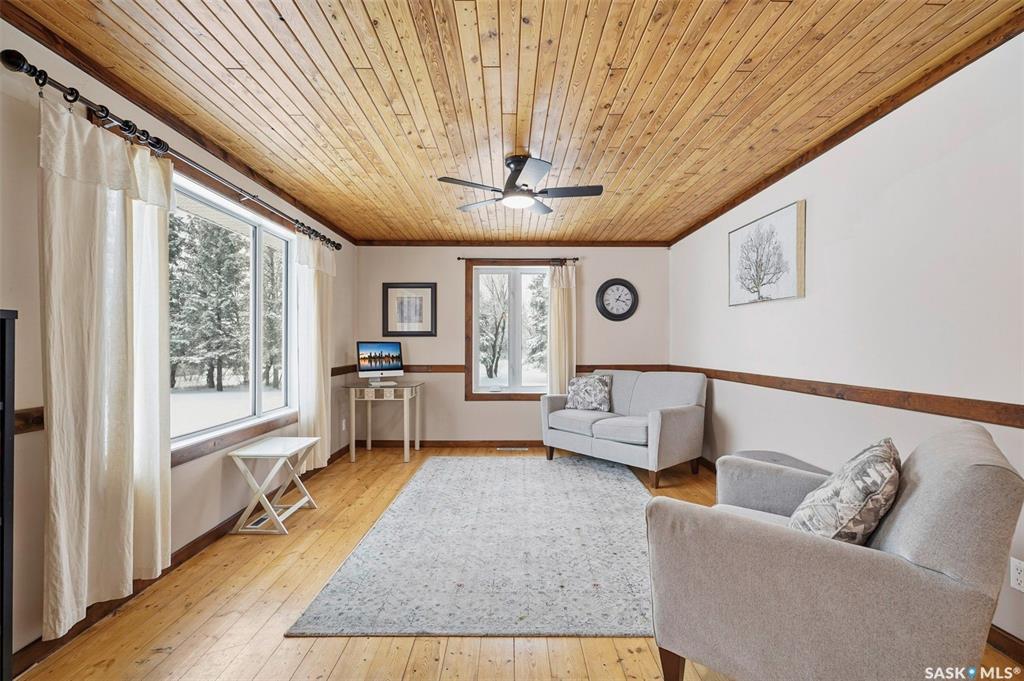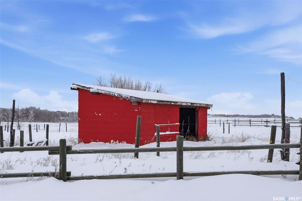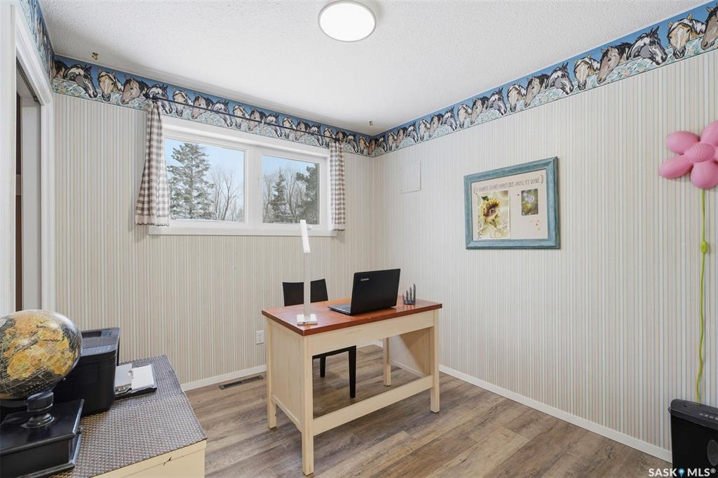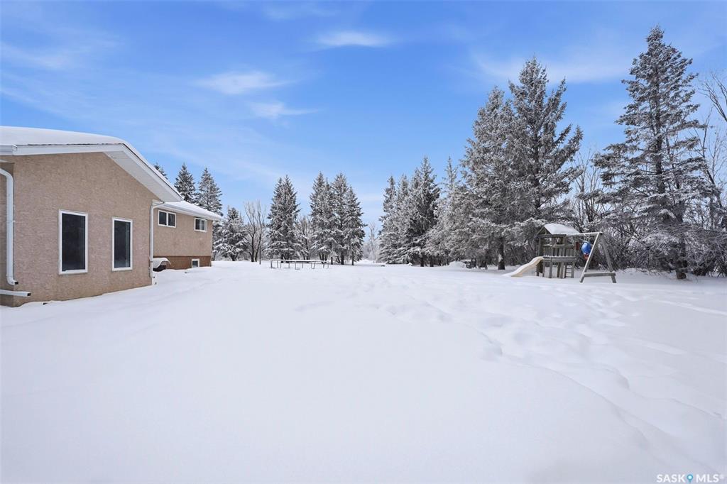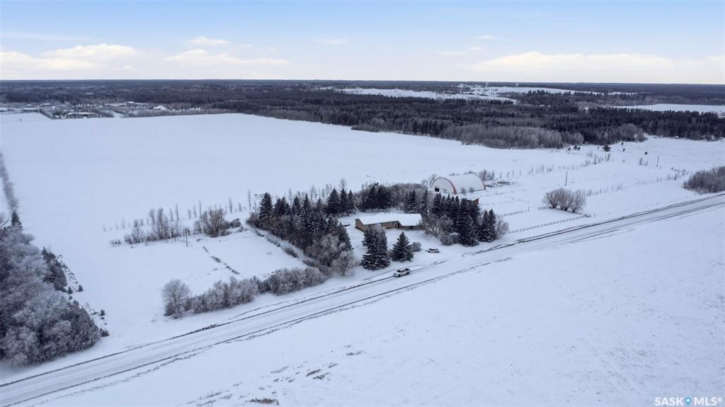 Set on 14.97 acres just minutes west of Prince Albert, this McLeod Road acreage offers the space, privacy, and freedom of true country living - without being far from town. Mature trees provide an excellent shelter belt on three sides, while open land to the east delivers beautiful sunrise views. The home features a unique and functional layout, ideal for acreage life. You’re welcomed through a bright foyer with ceramic tile and in-floor heat, set on a slab and designed to handle real life - muddy boots, b...