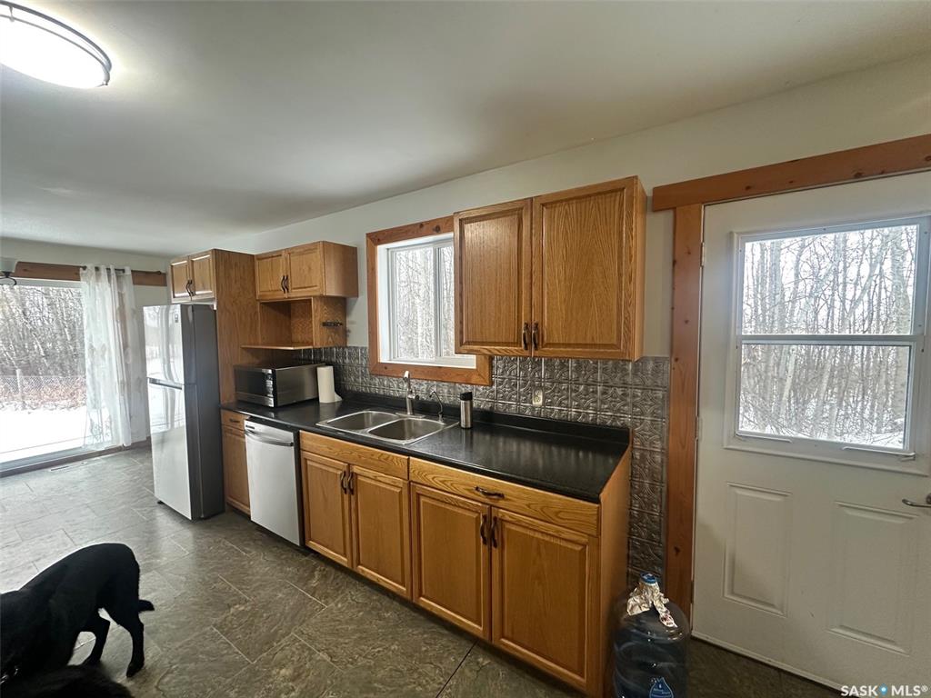 Welcome to the Paulson Acreage, only minutes from Weekes and Porcupine Plain, SK. 14.01 acres. Home has 2 bed on the main, and one large bedroom in the lower level 2 baths. 3 sided deck so you get east, south and west sunshine!!Outside there are several shops including one 32x48 another one 24x24. There is a barn, animal shelter, corrals, coops etc. Front and side yard is fenced for the dogs and children. Call to setup appointment to view