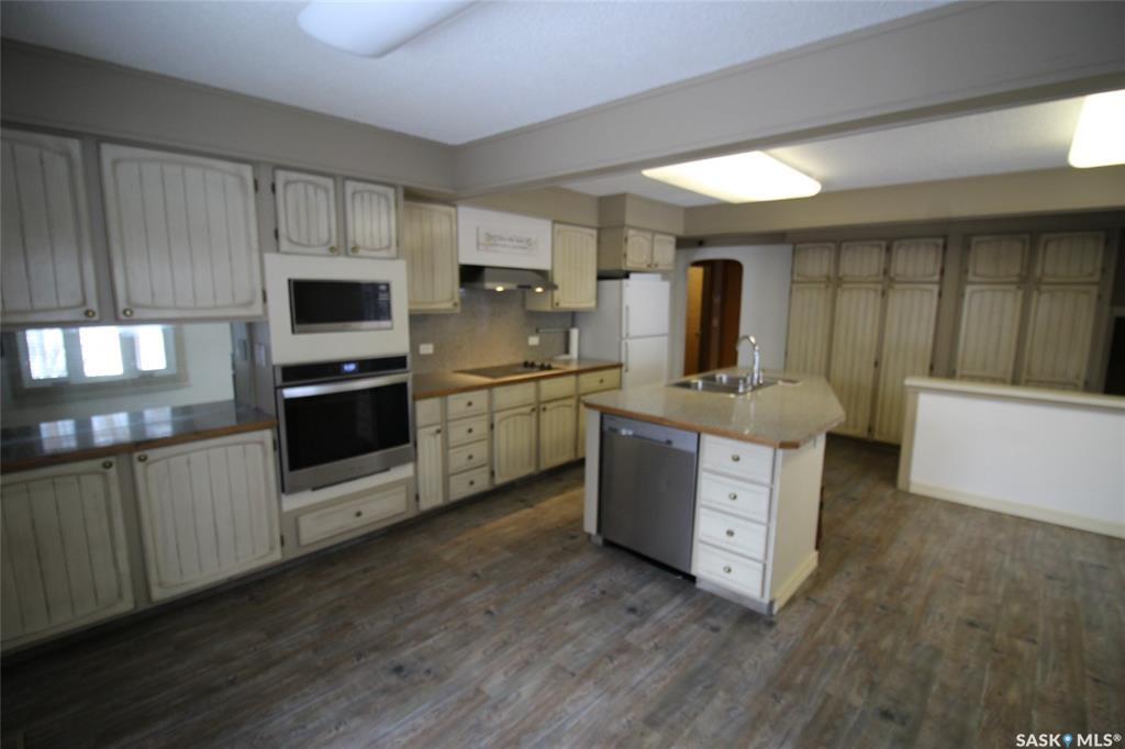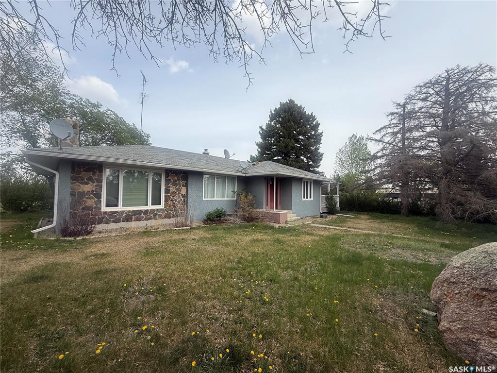 You have discovered the deal of a lifetime!! Located just 4km south of Frontier, SK, this luxurious home is waiting for you. Designed with a flair for style, you enter the home off of the curved paved drive into a large mud room, with lots of storage and a sink to wash up in. You come up to the heart of the home, the large country kitchen with a huge island, room for a dinette and patio doors to the deck. The kitchen has all the features with a built-in oven, microwave hood fan, glass top stove top, brand n...